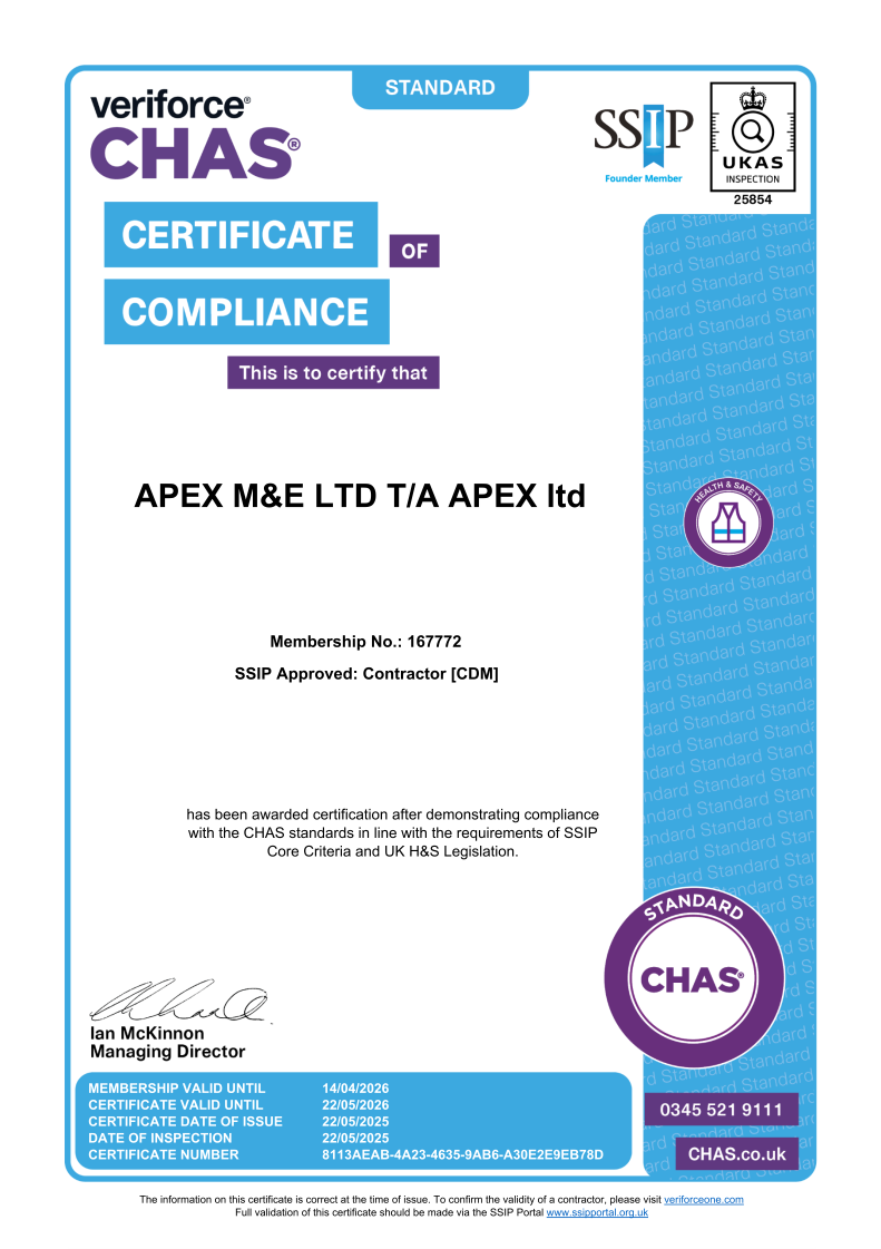 We maintain a strong commitment to professional development and continuous improvement across our team. Our team continually develops their skills through accredited training and industry-approved qualifications, ensuring full compliance and reliable delivery on every project. Apex M&E Ltd invests in ongoing training to ensure our engineers remain fully qualified and up to date with the latest industry regulations.